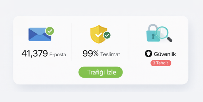 Mail trafiği, teslimat oranları ve güvenlik sürekli izlenir. Sorun oluşmadan önce müdahale edilir.