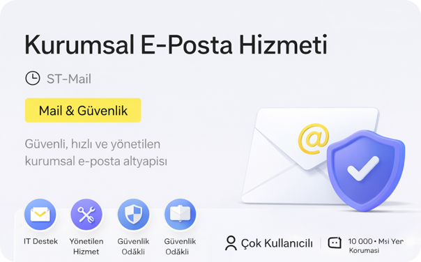 ST-Mail, işletmeler için özel olarak tasarlanmış güvenli, hızlı ve yönetilen kurumsal e-posta hizmetidir. Marka imajınızı güçlendirir, iletişiminizi güvence altına alır.